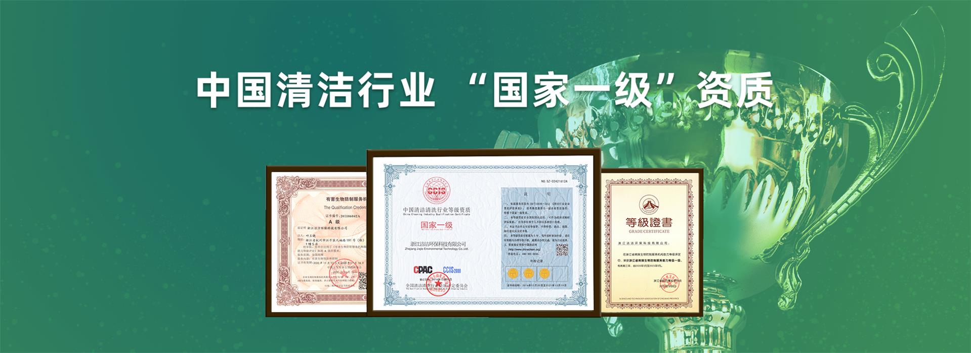 重要榮譽:“全國信用等級AAA級企業”、全國“重質量、守信 用企業”、“浙江省質量服務誠信AAA級企業”、中國中小商業 企業協會清潔行業分會常務理事員會單位